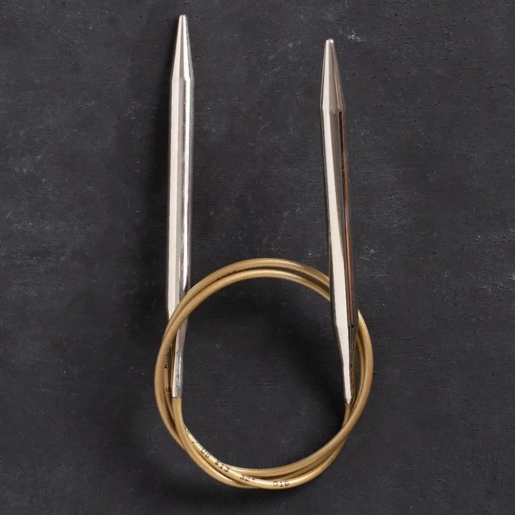 Addi Klasik Misinalı Şişler altın rengi misinasına ve pirinç uçlara sahiptir. Şişlerin hafif kaygan yapısı daha kolay örgü örme imkanı sunar.