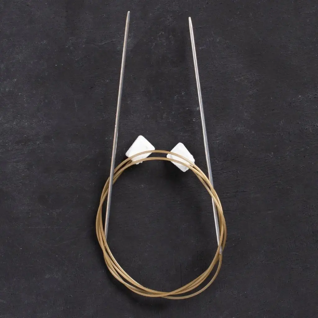 Klasik düz örgü şişi yerine esnek kordonlu düz örgü şişi kullanarak büyük projelerde daha kolay örebilirsiniz. Ayrıca misinalı şişlerdeki sürekli kendi kendine dönmesi gibi problemlerden de kurtulmuş olursunuz.