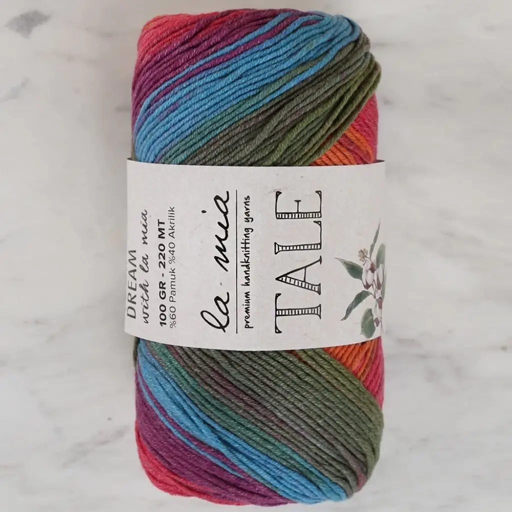 La Mia Markası'na ait yepyeni ürün TALE ile hayalini yarat.Geçişli renk tonlarının hakim olduğu bu seri ile havanız değişecek. Yumuşak ve kolay tüylenmeyen yapısı, güzel renk tonları ile örgüleriniz artık daha gösterişli. Tüm örgü modellerinizde güvenle tercih edebilirsiniz.